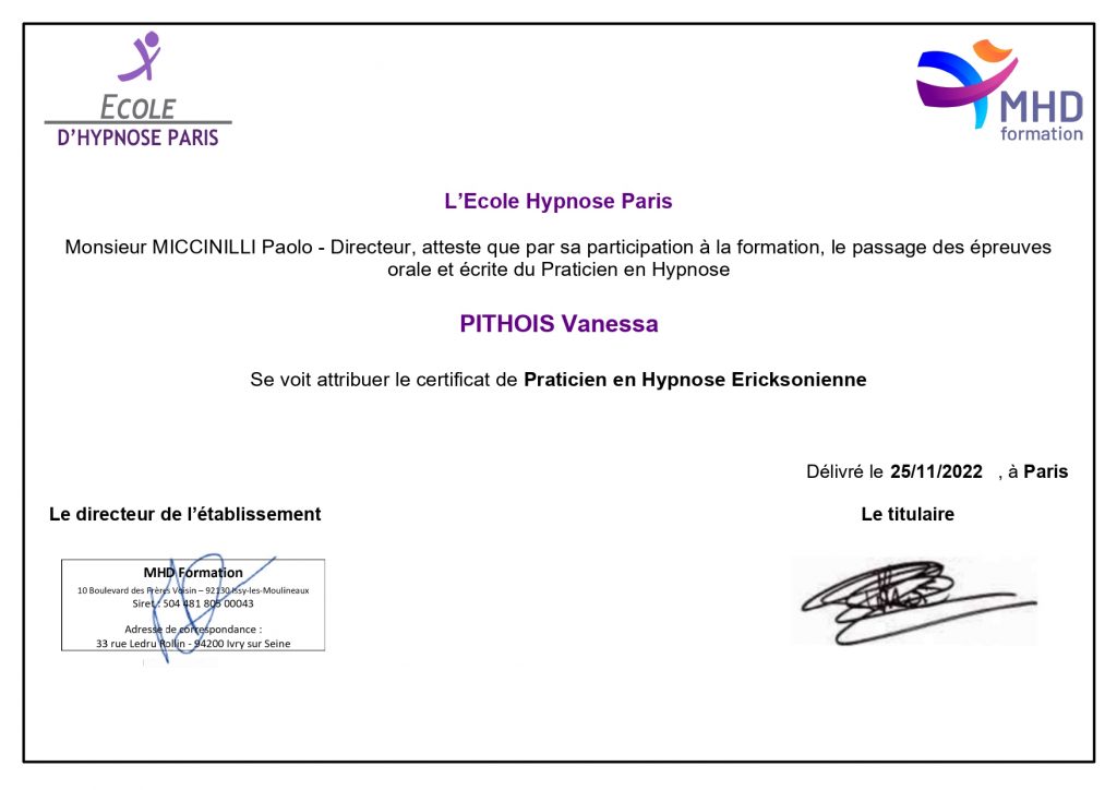 Certificat Praticien en Hypnose